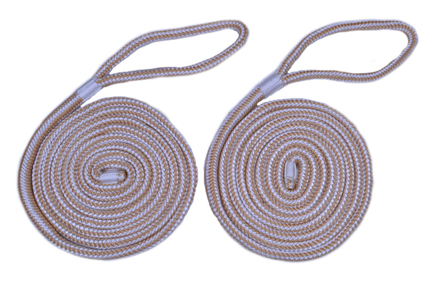1/4" Gold/White Fender Line For Boats - Double Braided Nylon 6 Feet Marine Rope - 2 Pack
