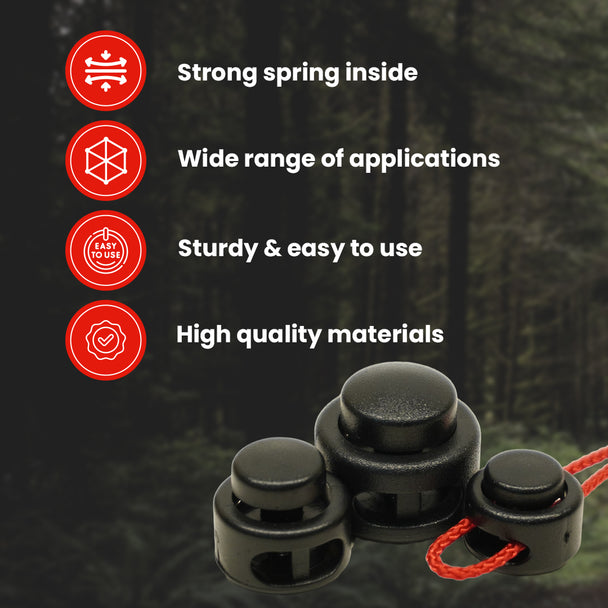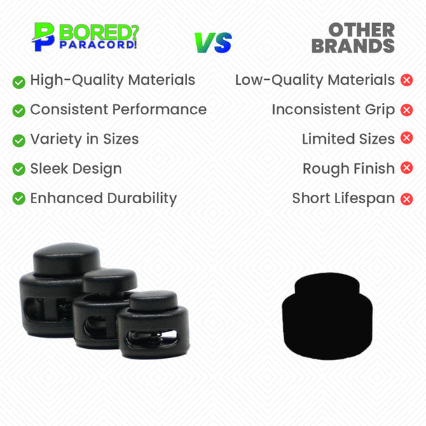 Regular price From $ 7.12These high quality round cord locks are built to keep your cords tight, secure, and tangle free. Crafted from durable yet lightweight plastic, they’re perfect for a variety of applications, including shoelaces, drawstrings, pant closures, paracord...
