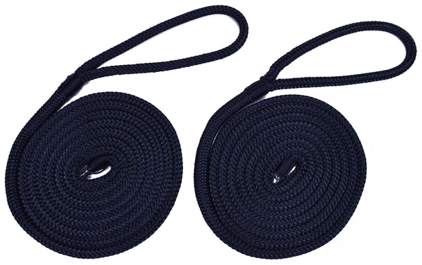 1/4" Navy Fender Line For Boats - Double Braided Nylon 6 Feet Marine Rope - 2 Pack
