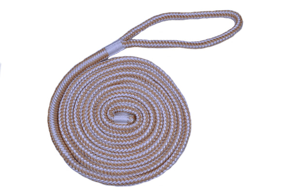 1/4" Gold/White Fender Line For Boats - Double Braided Nylon 6 Feet Marine Rope - 2 Pack