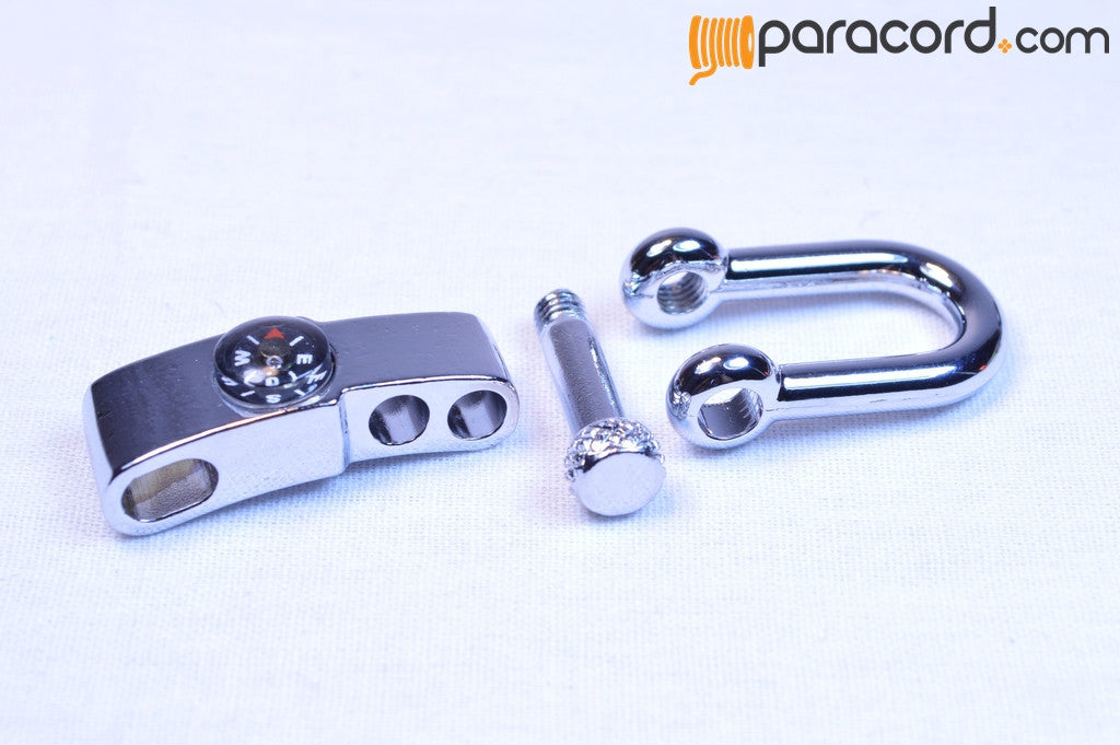 Shackle are a great way to add a little more flair to your paracord projects. These shackles come with an adjuster bar. The adjuster bar allows you to make the bracelet up to 1" smaller or larger. Because it has a compassm it can be used if needed in survival situations.