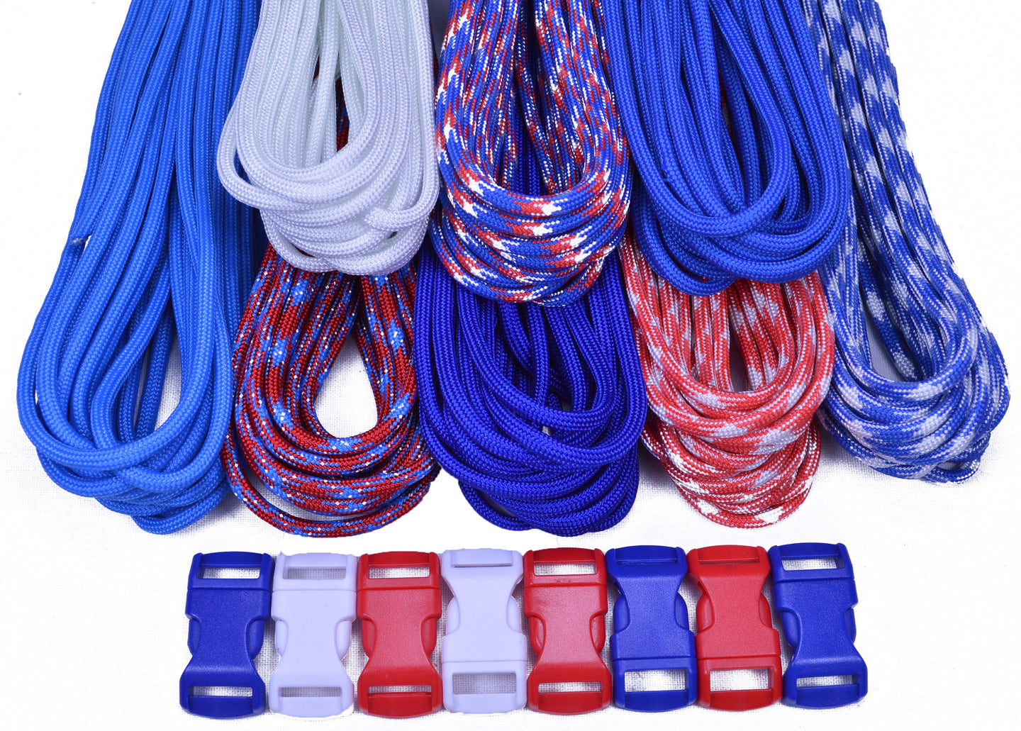 Combo kits are a great way to get your foot in the Paracord World.  Each kit includes multiple colors and matching 1/2" buckles.