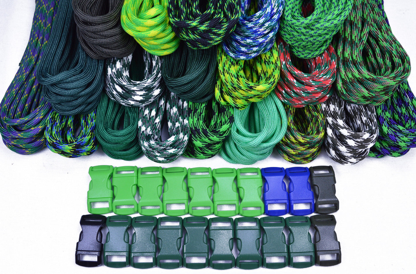 Combo kits are a great way to get your foot in the Paracord World. Each kit includes multiple colors and matching 1/2" buckles.