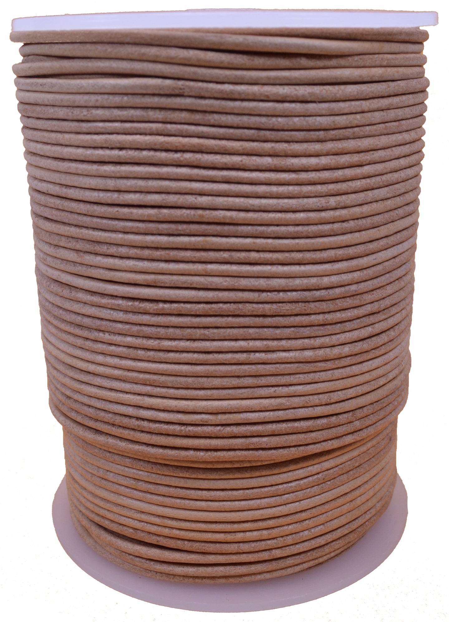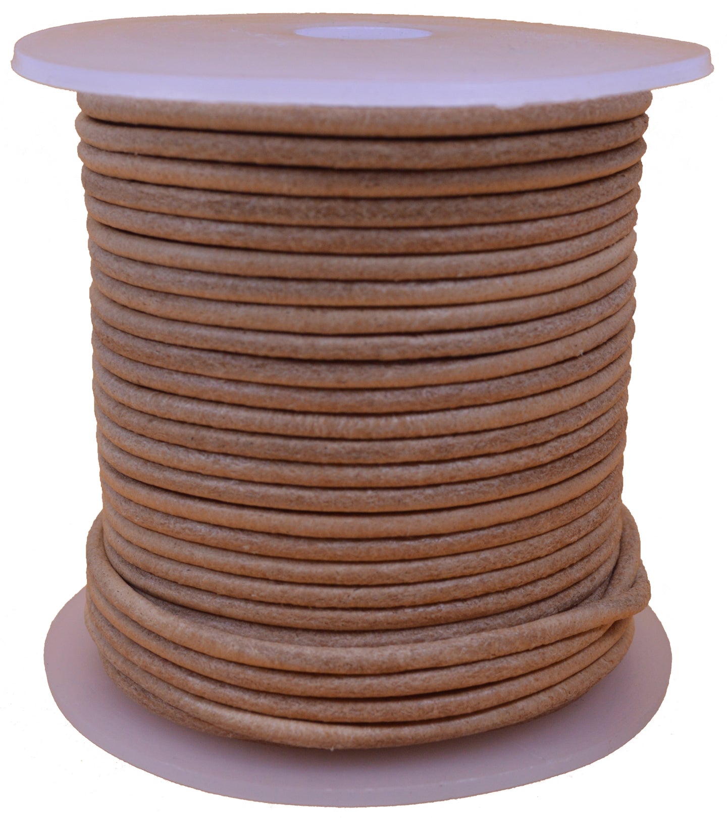 SPECS - Each color of our 2 mm Leather cord comes  in 3 lengths: 25 meters (82 feet), 50m (164 feet) and 100m (328 feet). All are tightly wrapped on spools for easy use.