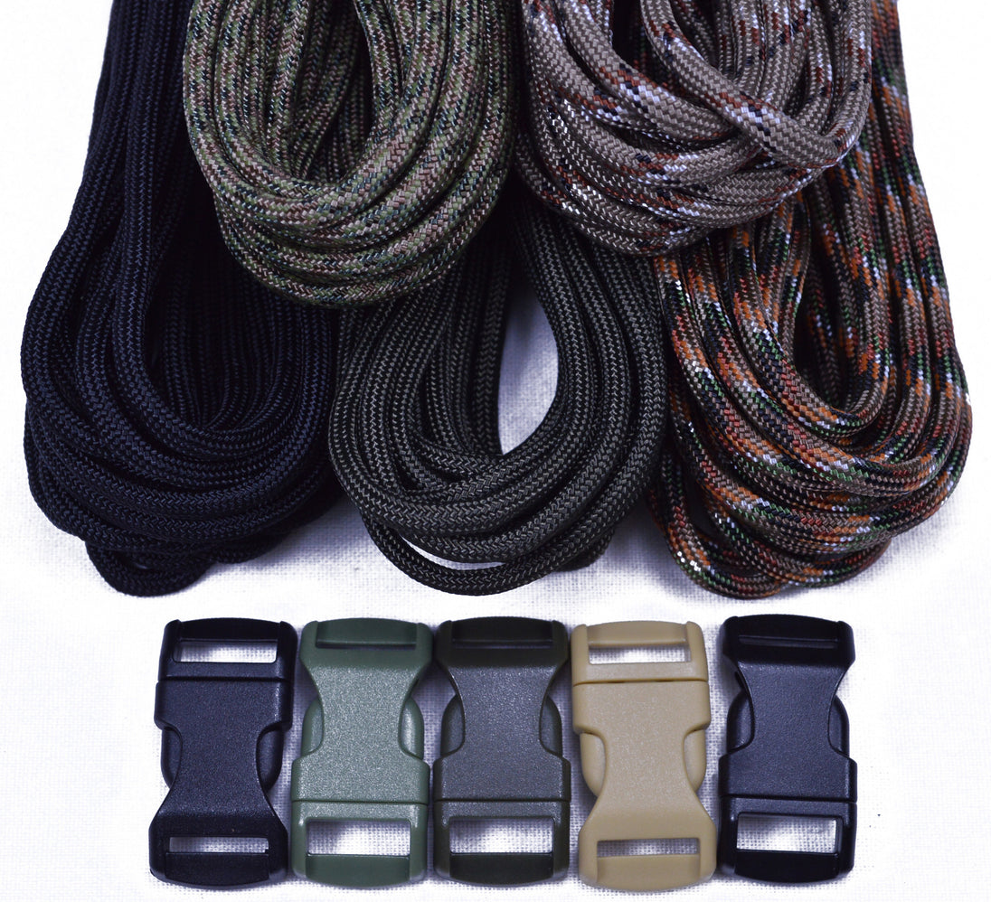 Combo kits are a great way to get your foot in the Paracord World. Each kit includes multiple colors and matching 1/2" buckles.