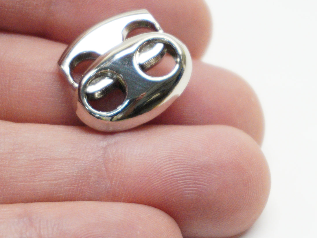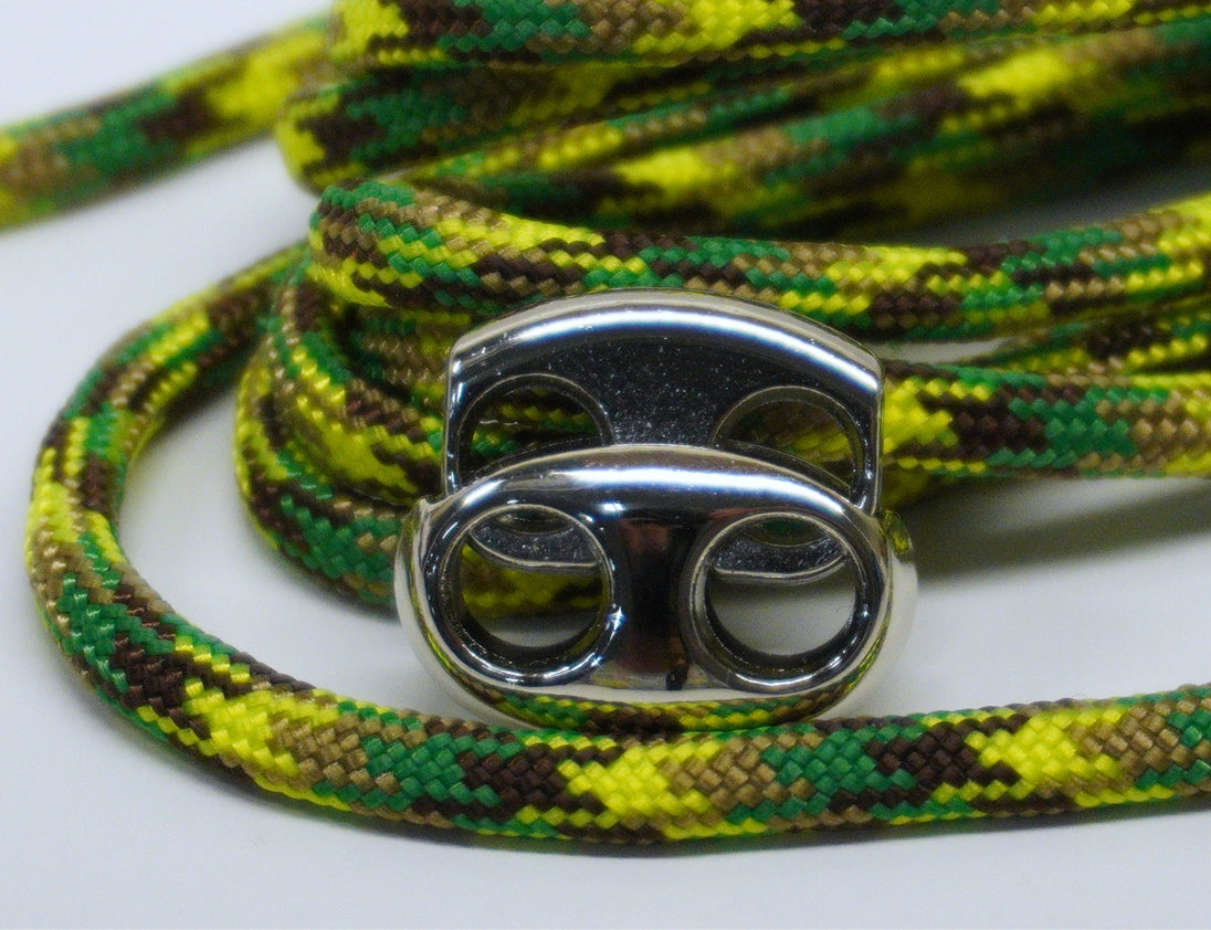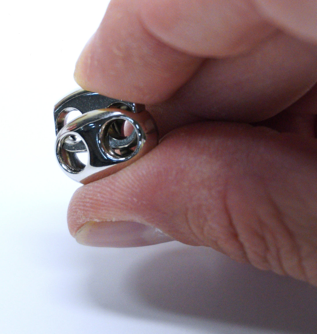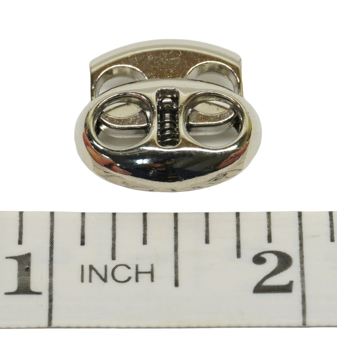 Add both function and flair to your next project with our Chrome Dual Hole Cord Lock. Designed for performance and style, this sleek cord lock features a dual hole design that securely holds two cords in place - perfect for paracord, drawstrings, jackets, bags, and more.