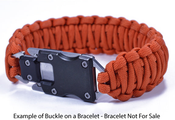 The Knife Buckles can be used with paracord to make a bracelet. Simply take this buckle, your favorite paracord, and favorite paracord weave and make a true tactical bracelet. Or, make weave a keyfob and attach this to your keys. The buckle locks in place with two safety catches.